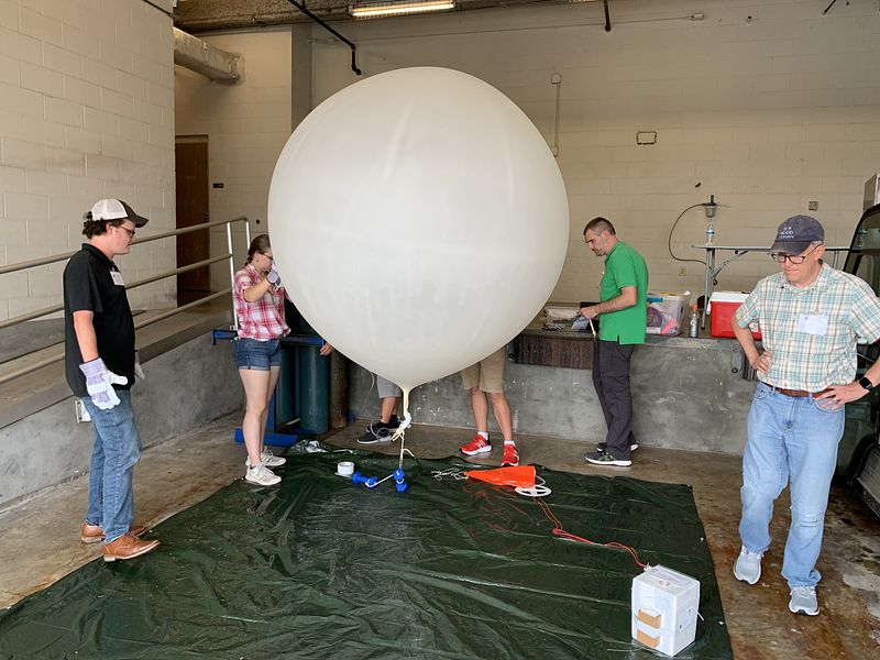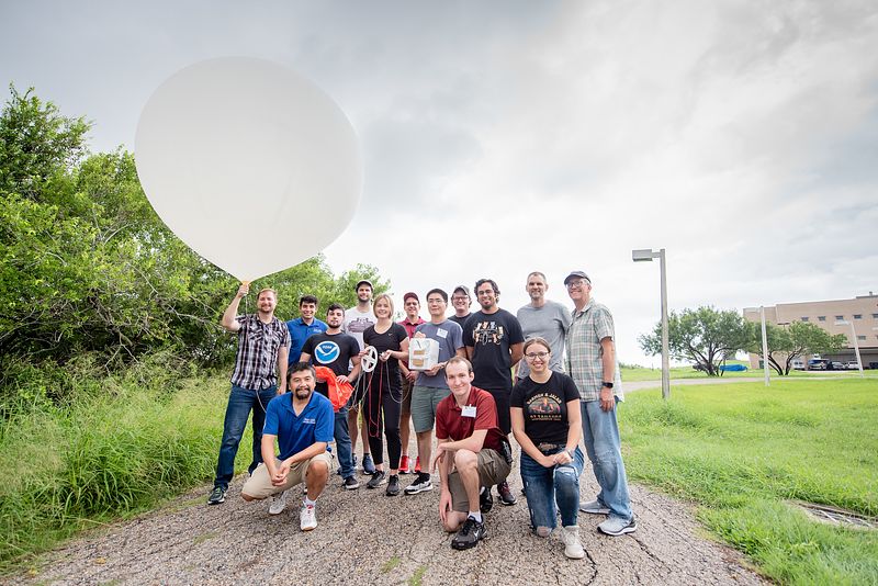 Students and postdocs from Texas A&M University - Corpus Christi, St. Edward's University, and Texas A&M University - College Station are attending ozonesonde training hosted by professors Chuntao Liu, Paul Walter, and Gary Morris. The balloons used reach about 30 km in altitude before popping.